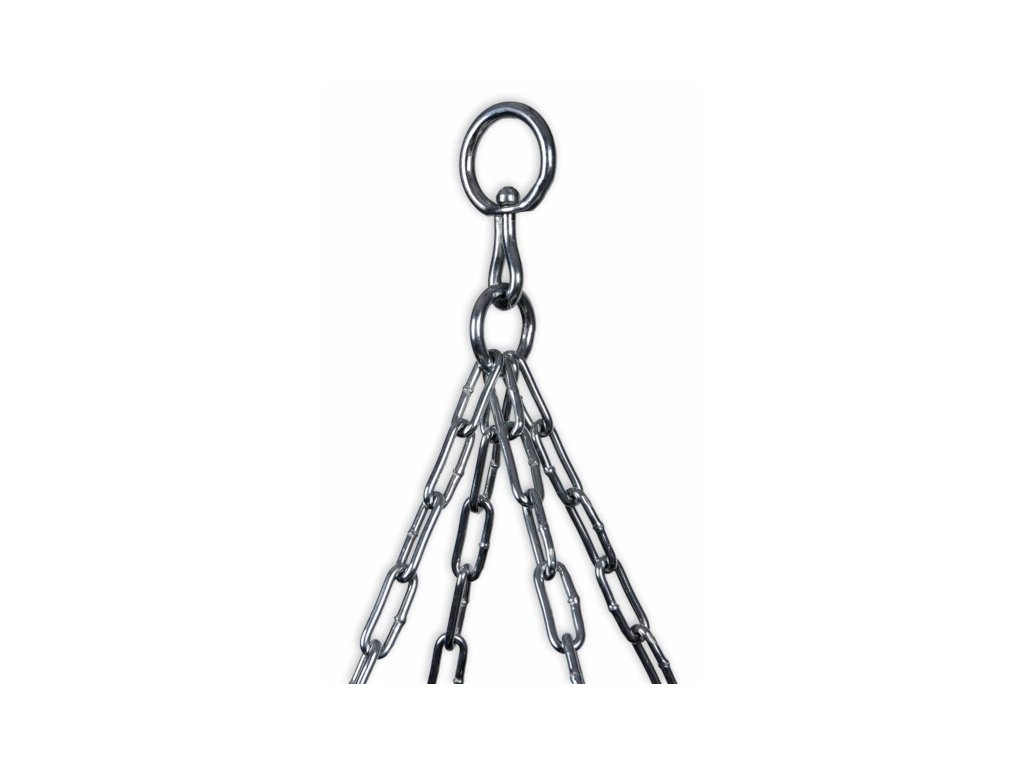 Všechny čtyři svařované řetězy jsou připevněny k trojúhelníkovým držákům, které zajišťují mnohem rovnoměrnější rozložení váhy pytle než běžné kulaté úchyty. Tyto držáky jsou napojené na široké nylonové popruhy s maximální nosností až 300 kg na každý.