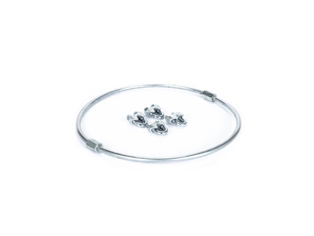 Rozpěrný kruh DBX BUSHIDO R40.2 se skládá ze šroubované obruče a 4 svorek, pomocí kterých se kruh zafixuje ke 2 protilehlým řetězům. Šroubovanou obruč lze rozebrat a provléct samotnými oky řetězů.